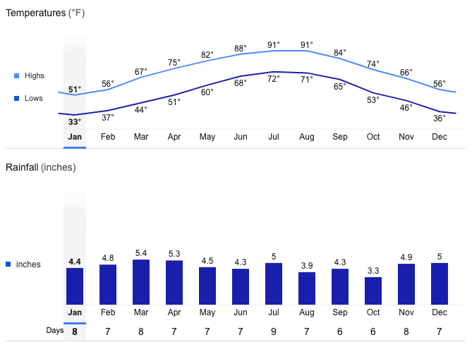 Birmingham Average Temperatures and Rainfall