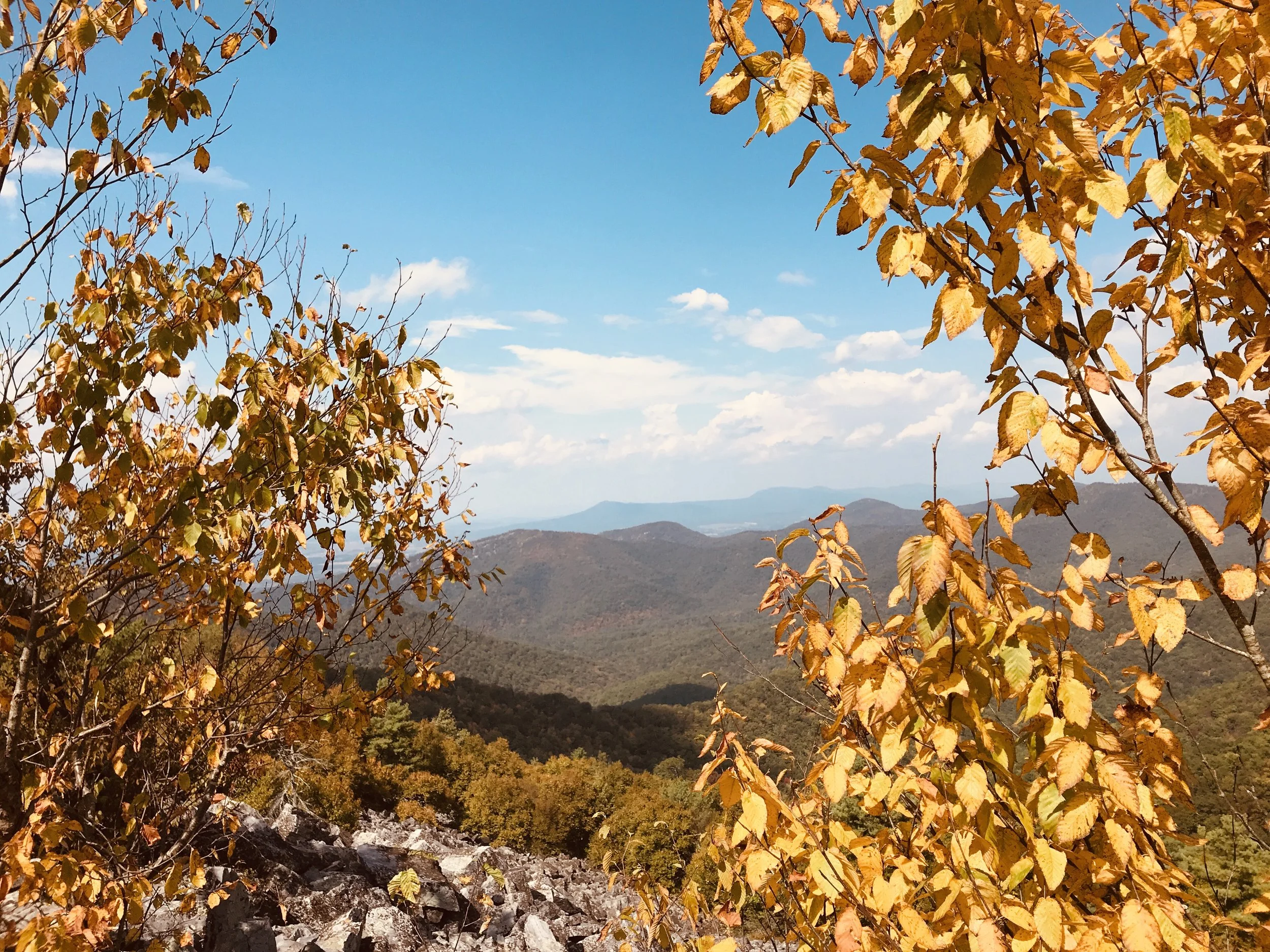 Driving south, the road leads through the northern section of the Blue Ridge Parkway that begins at the Shenandoah National Park and terminates at the Smokey Mountains National Park.