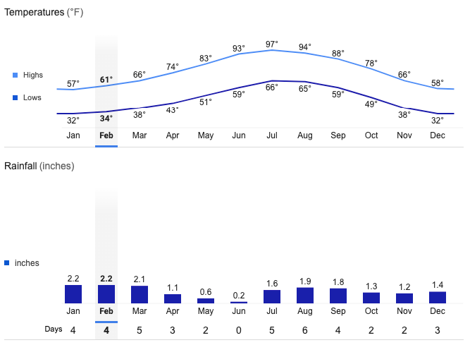 Sedona Average Temperatures and Rainfall