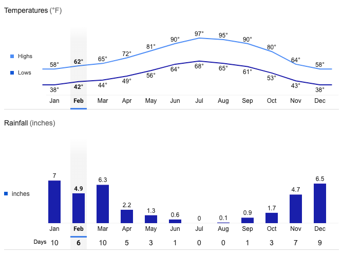 Redding Average Temperatures and Rainfall