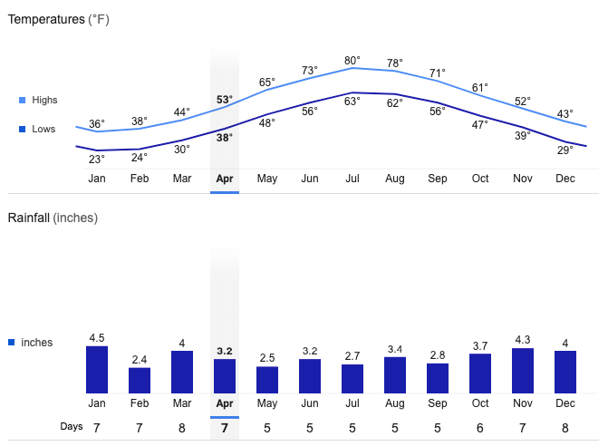 Provincetown Average Temperatures and Rainfall