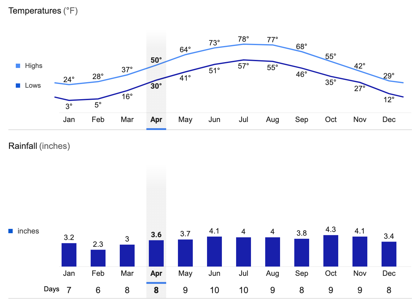 Millinocket Average Temperatures and Rainfall