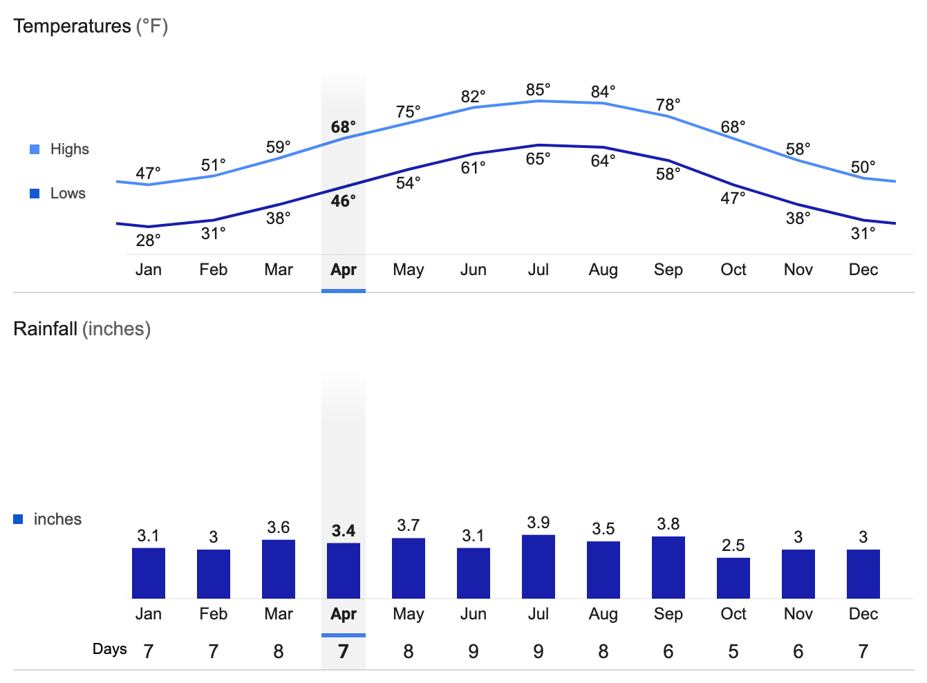 Asheville Average Temperatures and Rainfall