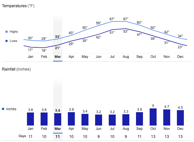 Saint John’s Average Temperatures and Rainfall