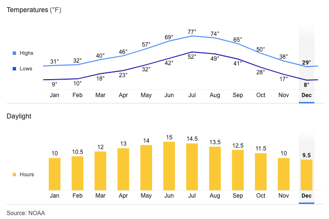 Great Basin Average Temperatures and Daylight