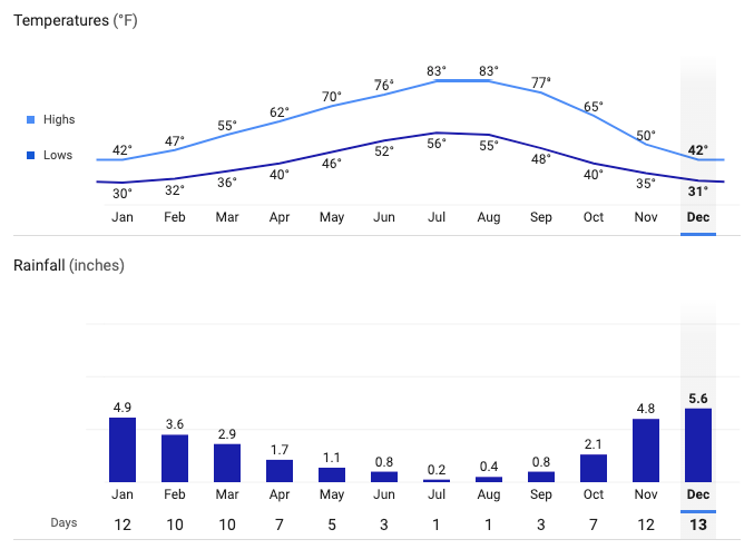 Hood River Average Temperatures and Rainfall
