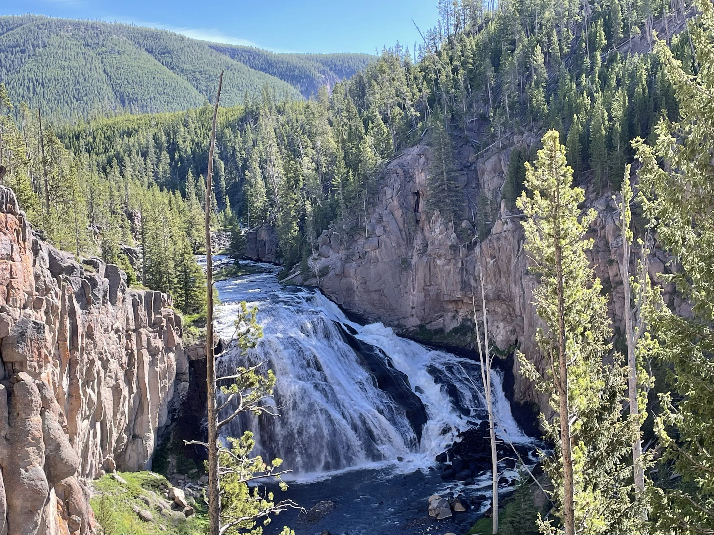 The south entrance from Grand Teton and the east entrance from Cody are generally the least crazy. The West Yellowstone entrance is snarl of traffic during the peak season.